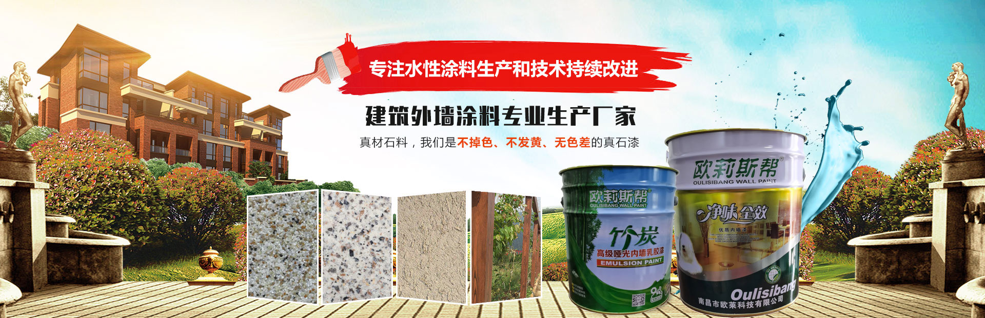 南昌市歐萊科技有限公司 主營產品:真石漆,多彩仿石漆涂料,木紋漆,質感涂料,內墻外乳膠漆,巖片漆,陶彩石,防水材料